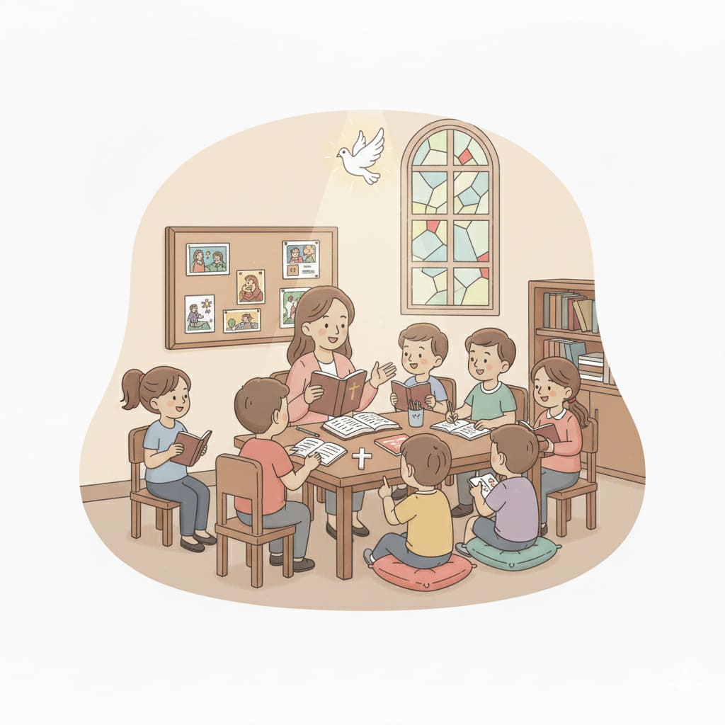 Formação religiosa de crianças e adolescentes, preparando-os para os sacramentos.